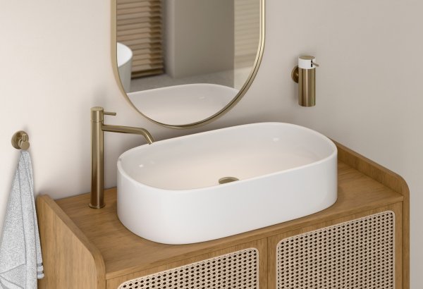 Neutralne kolory, organiczne formy oraz subtelne odniesienia do przeszłości pozwalają stworzyć miejsce, w którym nowoczesność łączy się z tradycją. Pomieszczenia wzbogacone o armaturę w odcieniach złota nabierają miękkości, a charakterystyczne dla współczesnych projektów odniesienia do minimalizmu zyskują w nich bardziej zmysłowy ton. Ciepło wynika tu nie tylko z barw, lecz także z połączenia materiałów, które współgrają ze sobą w naturalny, nienachalny sposób. Powstała przestrzeń uspokaja, zaprasza do zwolnienia i pozwala poczuć, że codzienne rytuały mogą stać się małymi momentami luksusu.
