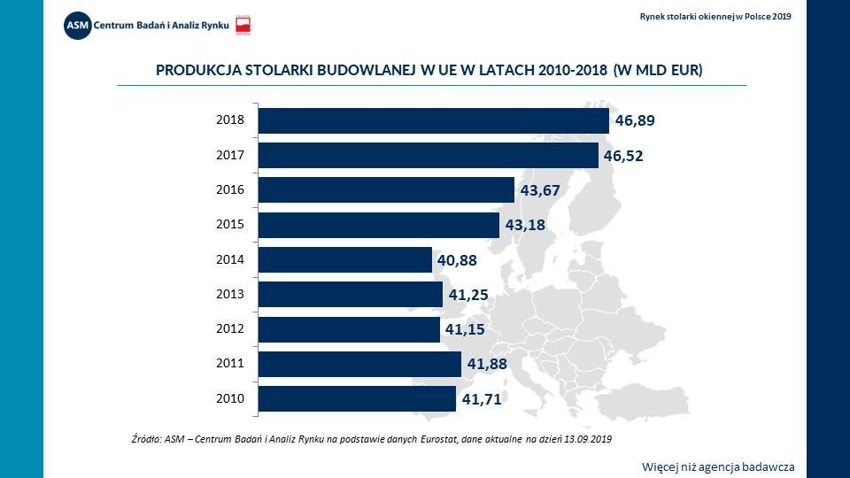 Zagłębiając się w zebrane dane oraz analizując wnioski autorów można stwierdzić, że sytuacja polskiej branży budowlanej ma się dobrze, i po raz kolejny zakończymy rok ze wzrostem. W 2018 roku wyprodukowano ok. 24,7 mln sztuk okien i drzwi, a więc o 5,2% więcej niż w 2017 roku i o 10,4% więcej niż w roku 2016. Mimo iż jest to wynik dodatni, trudno nie zauważyć spadku dynamiki wzrostu produkcji stolarki otworowej w całej UE. W 2018 roku w krajach Wspólnoty wyprodukowano okna i drzwi za kwotę 46,89 mld EUR, a więc jedynie o 0,8% więcej niż w 2017 roku. Oczywiście odnotowana w 2018 roku niska dynamika wzrostu r/r jest częściowo wynikiem wyższej bazy odniesienia. Jednak analizując sytuację na rynkach europejskich możemy mówić o sygnałach słabnących wyników europejskich.