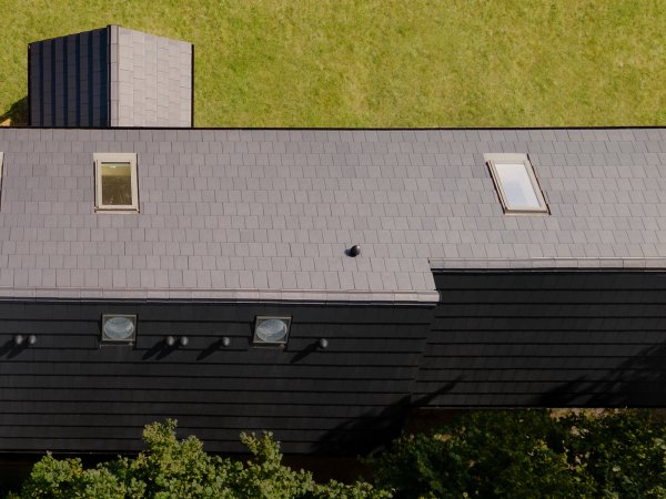 Dzięki płaskiej powierzchni dachu pokrytego dachówką SIMPLA bryła domu wydaje się lżejsza i bardziej harmonijna. Minimalistyczny charakter tego pokrycia sprawia, że równie dobrze sprawdzi się na dachu nowoczesnej willi z dużymi przeszkleniami, jak i na tradycyjnym budynku z dwuspadowym dachem, któremu nadaje współczesny charakter.