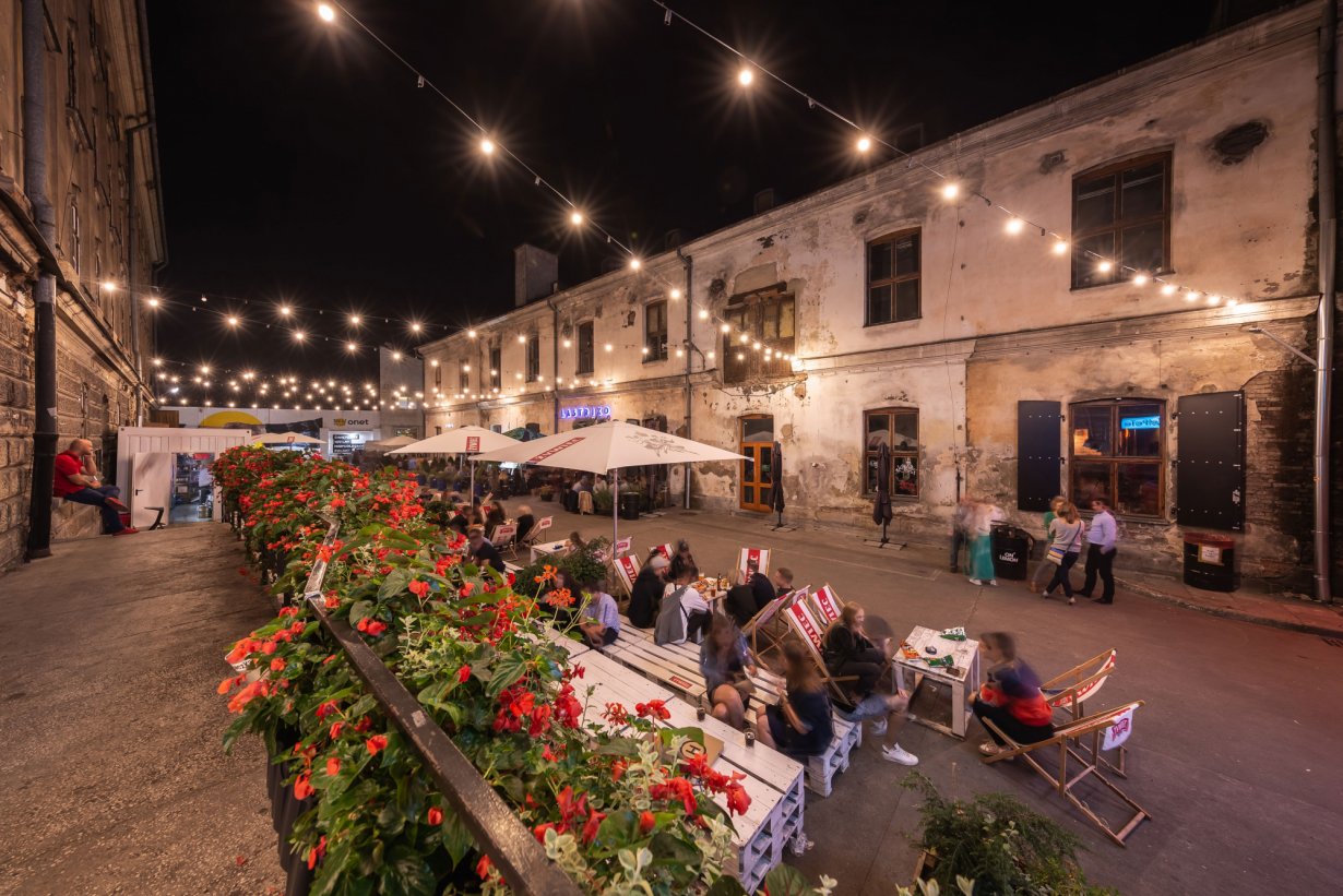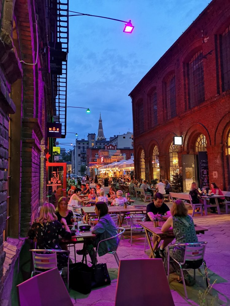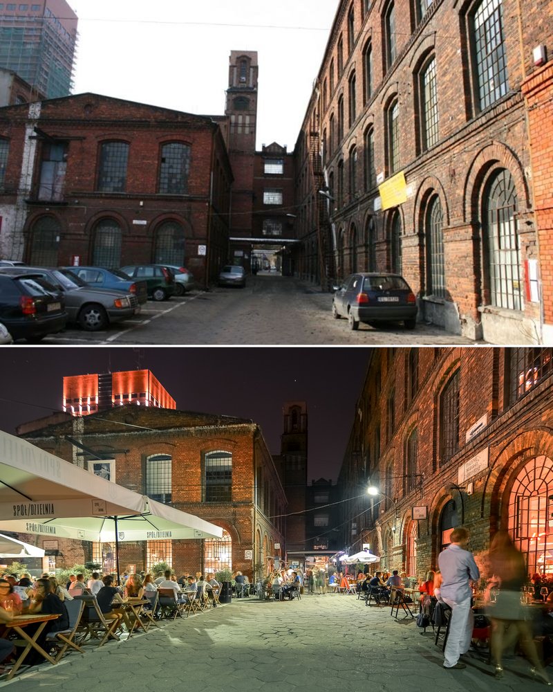 Dobrym przykładem jest OFF Piotrkowska Center – wielofunkcyjny kompleks usługowy uchodzący obecnie za jedną z najmodniejszych przestrzeni w Łodzi. Obiekt powstał w miejscu dawnej przędzalni Franciszka Ramischa – jednego z najbogatszych mieszkańców miasta okresu przedwojennego. Na terenie kompleksu o powierzchni niemal 13 tys. m2 znajdują się restauracje, kluby muzyczne, sale prób, pracownie projektantów mody czy przestrzenie wystawiennicze. Regularnie odbywają się tu również imprezy masowe. Skupienie tak różnorodnej oferty w jednym obiekcie sprawiło, że spotkania towarzyskie i biznesowe na stałe powróciły do ścisłego centrum miasta.