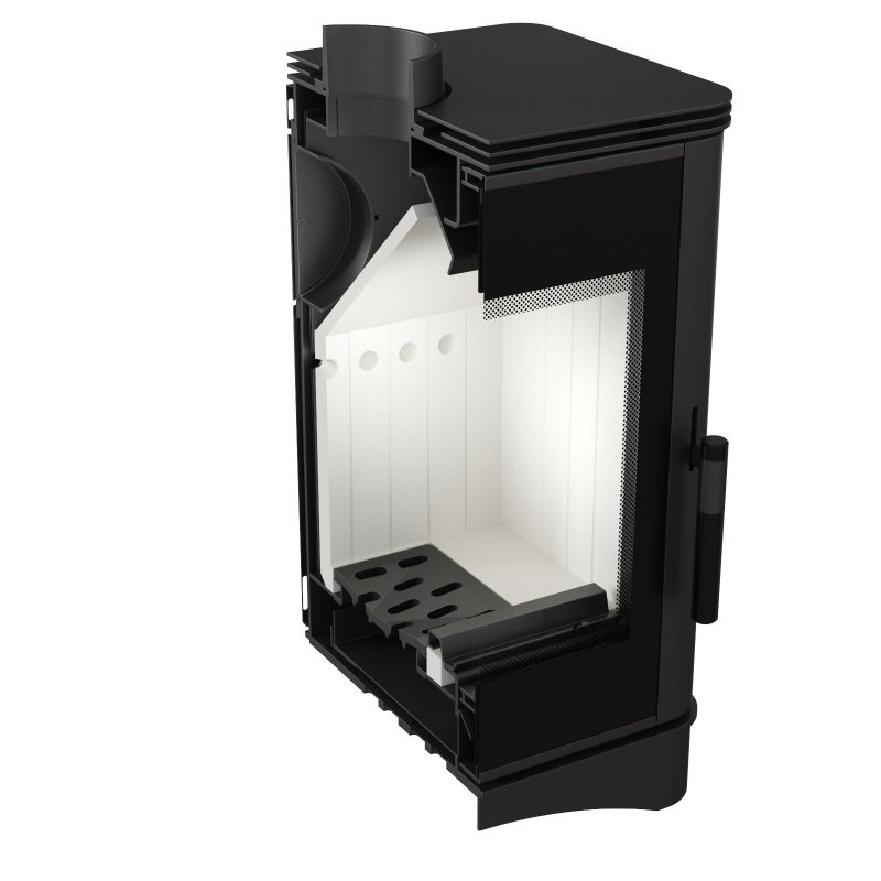 Do produkcji kozy VEGA użyto zarówno wysokiej jakości stali, jak i żeliwa. Gwarantuje to długotrwałą eksploatację oraz wyjątkową odporność na wysokie temperatury. Dzięki odpowiedniemu połączeniu obu materiałów możliwe było skonstruowanie urządzenia o opływowych kształtach i mniejszej wadze. Geometryczne budowa i precyzyjne wykończenie to cechy idealnie wpisujące się w trend minimalistycznego wzornictwa, który dominuje we współczesnych aranżacjach wnętrz. Kozy VEGA to gwarancja komfortowej obsługi i wygodnej regulacji intensywności spalania. Zapewnia to regulator dolotu powietrza umieszczony poniżej drzwi pieca. Zwiększenie efektywności spalania uzyskano dzięki zastosowaniu potrójnego systemu dopowietrzania komory spalania. To innowacyjne rozwiązanie pozwala też ograniczyć osadzanie się zanieczyszczeń na szybie. Codzienne utrzymanie urządzenia w czystości oraz komfortową obsługę umożliwia wyjmowany ruszt oraz popielnik. Dodatkowym atutem są również regulowane nóżki, dzięki którym piec można z łatwością wypoziomować.