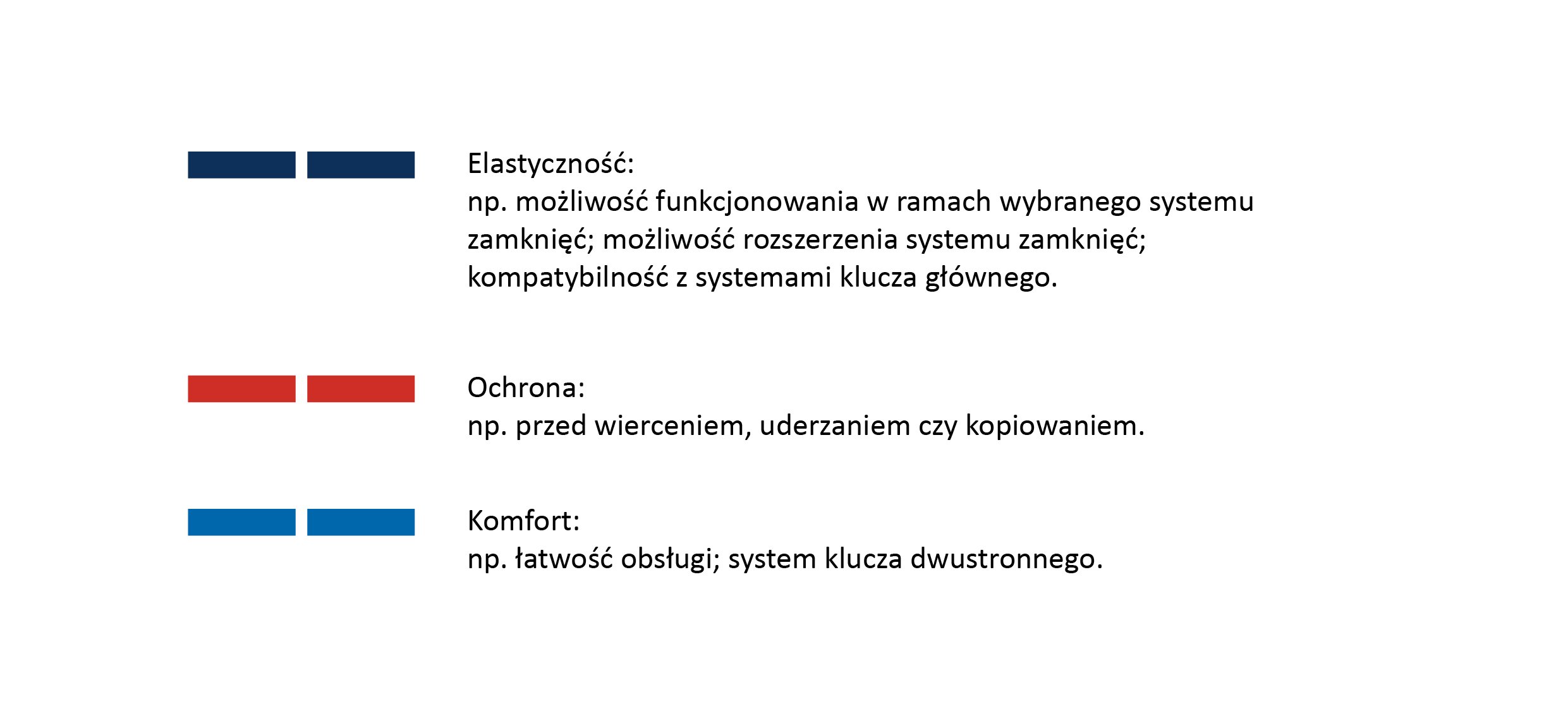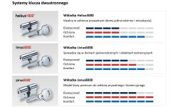 - Zalety: łatwa i intuicyjna obsługa; modułowa budowa cylindra umożliwia indywidualne dopasowanie wkładki do różnych wymagań i zastosowań.