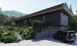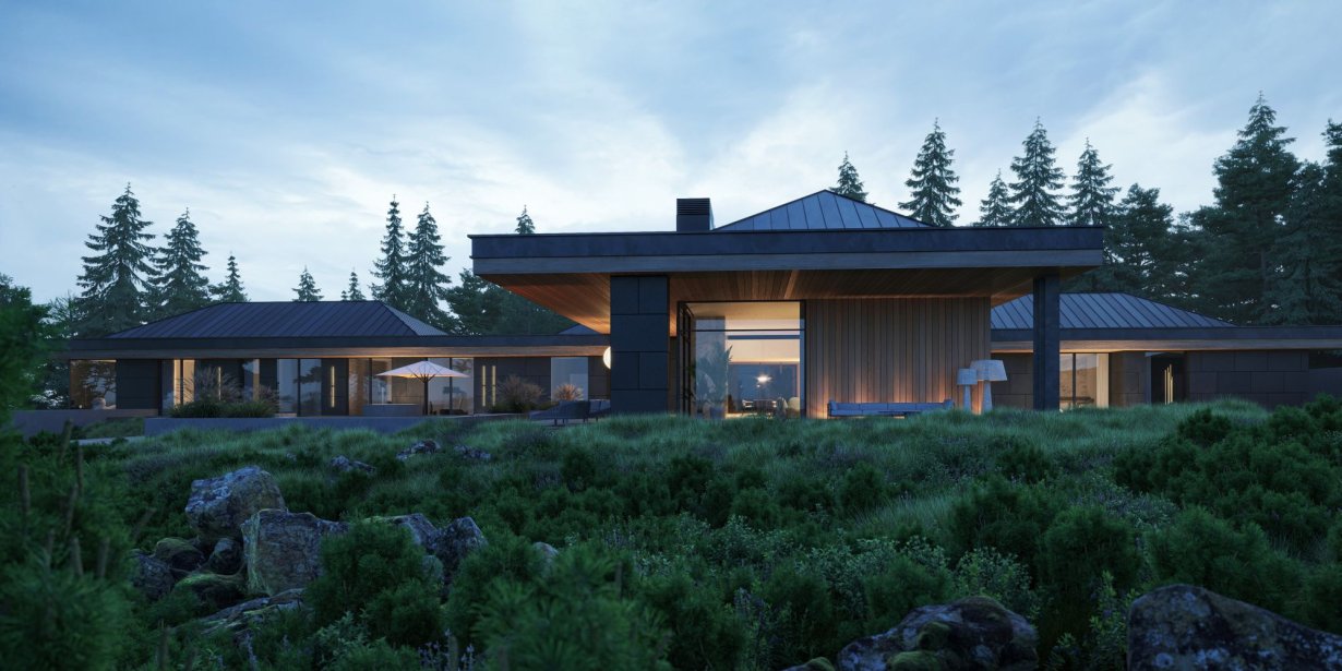Przedstawiamy projekt domu usytuowanego na zboczu góry, z przepięknym widokiem na górzysty krajobraz, rozciągający się ponad dachami domów położonych niżej. Ten widok urzekł zarówno inwestorów, jak i nas – architektów. To właśnie panorama oraz poczucie prywatności stały się najważniejszymi założeniami projektowymi. Zarówno układ funkcjonalny budynku, jak i jego orientacja względem terenu zostały podporządkowane tym dwóm celom.