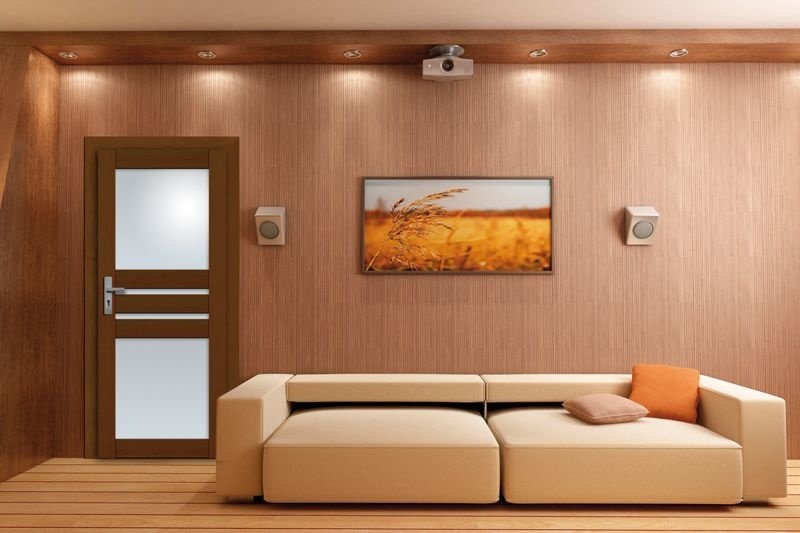 Szklane kompozycje w sosnowych drzwiach wewnętrznych