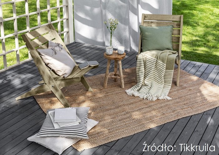 Dawno minęły już czasy, kiedy inwazyjne dla środowiska produkty rozpuszczalnikowe były najlepszym wyborem do zabezpieczania drewnianych obiektów w przydomowej przestrzeni. Tikkurila była jednym ze światowych prekursorów w tworzeniu rozwiązań pozwalających na skuteczną ochronę drewna w ekstremalnych warunkach skandynawskich na bazie przyjaznych dla natury rozwiązań. Wodorozcieńczalna lakierobejca Tikkurila Vallti Plus Complete jest obecnie jednym z najskuteczniejszych środków zabezpieczających drewniane meble i obiekty małej architektury wokół domu, zapewniającym nawet do 12 lat ochrony przed zmiennymi warunkami pogodowymi, w tym wodą, słońcem, skokami temperatur oraz przed działaniem grzybów pleśniowych. Stworzony na bazie naturalnych składników olej do drewna Tikkurila Valtti Plus Terrace Oil, przeznaczony także do zabezpieczania wymagających powierzchni płaskich, jak tarasy czy pomosty, stworzy aksamitną powłokę chroniącą drewno do 5 lat przy zachowaniu najwyższych norm ekologicznych standardu Nordic Swan Ecolabel. Tikkurila także w przypadku produktów do drewna zewnętrznego proponuje ponadprzeciętnie bogatą paletę barw, obejmującą obok odcieni naturalnego drewna również kolory bazujące na tonacjach czerwieni, zieleni, szarości, bieli czy błękitu, umożliwiając wykreowanie trwałej powłoki zabezpieczającej drewno przez wiele lat w nieszablonowym wydaniu.
