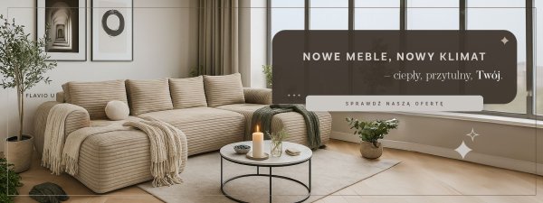 - Dopasuj sofę do proporcji wnętrza — w małych salonach najlepiej sprawdzają się kompaktowe sofy i narożniki L.
