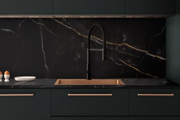 Blat San Sebastian PK9033 to propozycja dla miłośników ciemnych barw i wysmakowanej elegancji. Jego wyrafinowana kolorystyka, oparta na odcieniach czerni i złota sprawia, że świetnie odnajduje się w różnych kuchniach, zarówno tych eleganckich, jak i bardziej miejskich, a nawet industrialnych. Dekor dostępny jest wyłącznie w kolekcji blatów UltraFit, które mają zaledwie 13 mm grubości. W aranżacji wnętrza możemy połączyć go z ciemnym, ciepłym drewnem, np. orzechem, z matową czernią z kolei stworzy ultraminimalistyczną stylizację. W jego towarzystwie świetnie prezentują się dodatki i akcesoria w kolorach miedzi oraz złota. Bez wątpienia jest to dekor, który wabi spojrzenia i wynosi aranżację kuchni na wysoki, ekskluzywny poziom.