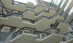 „Budynek jest zaprojektowany dość tradycyjnie, niemniej innowacją - choć już obecnie wchodzącą do standardu - było zastosowanie specjalnego systemowego zbrojenia balkonów z przekładką termiczną. Dzięki temu mogliśmy swobodnie podejść do kształtowania geometrii balkonu, nie obciążając się dotychczasowym wymogiem ocieplania całości płyty balkonowej warstwą styropianu.” - mówi Piotr Zmarzłowski, architekt z grupy projektowej KONKRET. W ten sposób balkony uzyskały smukły i delikatny przekrój, który dodatkowo podkreślono pocieniając w formie klina płytę balkonową od elewacji do linii balustrady.
