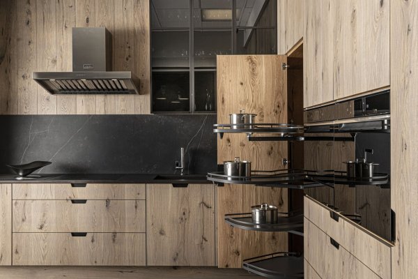 Kolejnym krokiem w ewolucji systemów kuchennych są rozwiązania modułowe, w których poszczególne elementy – jak szuflady, np. w wysokim cargo – wysuwają się niezależnie od siebie. Tego typu systemy oferują wyjątkową elastyczność, szczególnie w przypadku przechowywania produktów o niestandardowych gabarytach. Wysokie szafki, wyposażone w elektroniczne systemy otwierania, dodatkowo zwiększają komfort użytkowania, umożliwiając szybkie sprawdzenie zawartości bez konieczności manualnego otwierania, szczególnie w szafkach pod sufitem. To technologia, która wpisuje się w ideę „smart kitchen” – przestrzeni reagującej na potrzeby użytkownika w sposób intuicyjny i niemal niewidoczny.