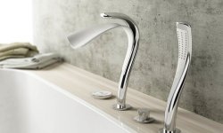 Linfa - czyli oferta eleganckich urządzeń do Twojej łazienki. Oferta obejmuje kilka modeli kranów, umywalek, wanien i prysznicy. Elegancki design i wyjątkowe materiały który wręcz celebrują naturalny przepływ wody w Twojej łazience. Kolekcja zainspirowana przez wodospady i liści. Dodatkową zaletą linii jest zastosowanie elektronicznych pokręteł i pilotów sterujących, co sprawia, że Linfa jest jeszcze bardziej pociągająca.
