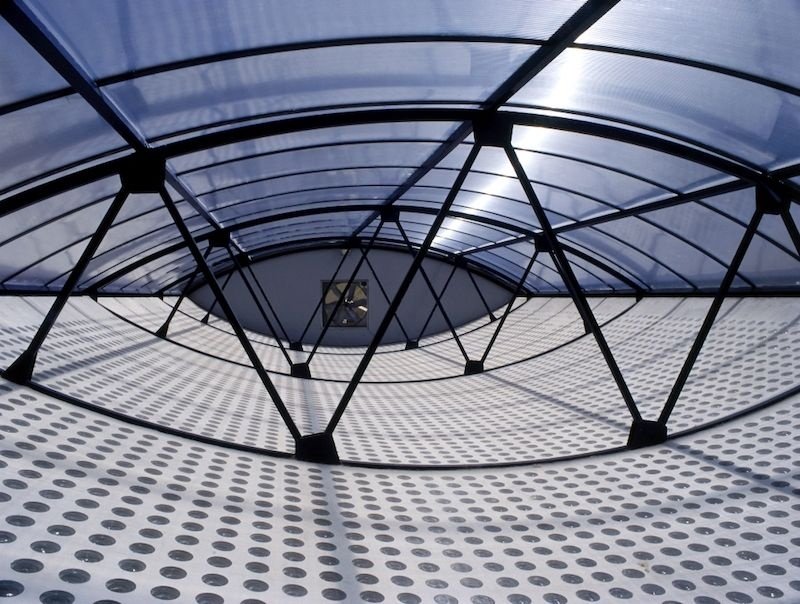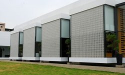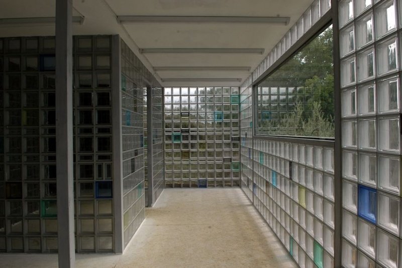 o wymiarach 8.6m x 8.6 m oddziela dom od ruchliwej ulicy, a wewnątrz budynku daje efekt wodospadu światła). Szklane cegły pojawiły się także na elewacji budynku mieszczącego butik Chanel w Amsterdamie, zrealizowanego przez pracownię MVRDV w 2016 r.