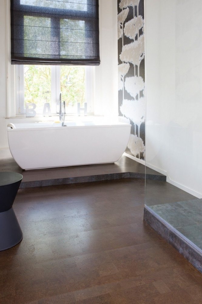 Podłogi korkowe Wicanders, Domu Korkowego są odporne na działanie grzybów i pleśni. Nie przyciągają i nie pochłaniają kurzu. To doskonała propozycja dla alergików i astmatyków. Korek jest materiałem niezwykle przyjaznym dla środowiska, co przysparza mu w ostatnich czasach popularności. Zaczyna być również doceniany przez dekoratorów wnętrz, którzy nie boją łączyć się go z surowym, nowoczesnym stylem. Wnętrze łazienki ma często chłodny charakter z powodu znajdujących się tu niezbędnych urządzeń sanitarnych oraz uniwersalnego standardu aranżacji. A przecież, pomieszczenie, w którym chodzimy boso, powinno być wypełnione ciepłem, jeszcze przed załączeniem gorącej wody. Eko materiał na powierzchni podłogi świetnie ogrzeje wnętrze i wprowadzi nas w komfortowy kojący nastrój. Łatwe w pielęgnacji podłogi korkowe oferowane są w bogatej palecie naturalnych i barwionych wzorów. Ciekawym rozwiązaniem dla wnętrza w jasnych tonacjach mogą być ciemniejsze wybarwienia podłóg np. Identity Tea z kolekcji Identity, czy eleganckie Slate Caffe z New Collection. Transparentna farba precyzyjnie uwypukla fakturę korka, pozostawiając naturalny efekt. Podłoga korkowa może być świetną alternatywą dla zimnych kafelków z kamienia.