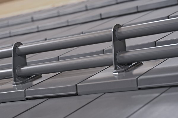 · Wsporniki montażowe – dedykowane uchwyty dopasowane do konkretnych modeli dachówek ceramicznych swissporTON zapewniają stabilne, bezpieczne mocowanie całego systemu bez naruszania szczelności pokrycia. Różne typy wsporników są dostępne dla różnych kształtów dachówek – od płaskich, przez półpłaskie, po tradycyjne karpiówki.