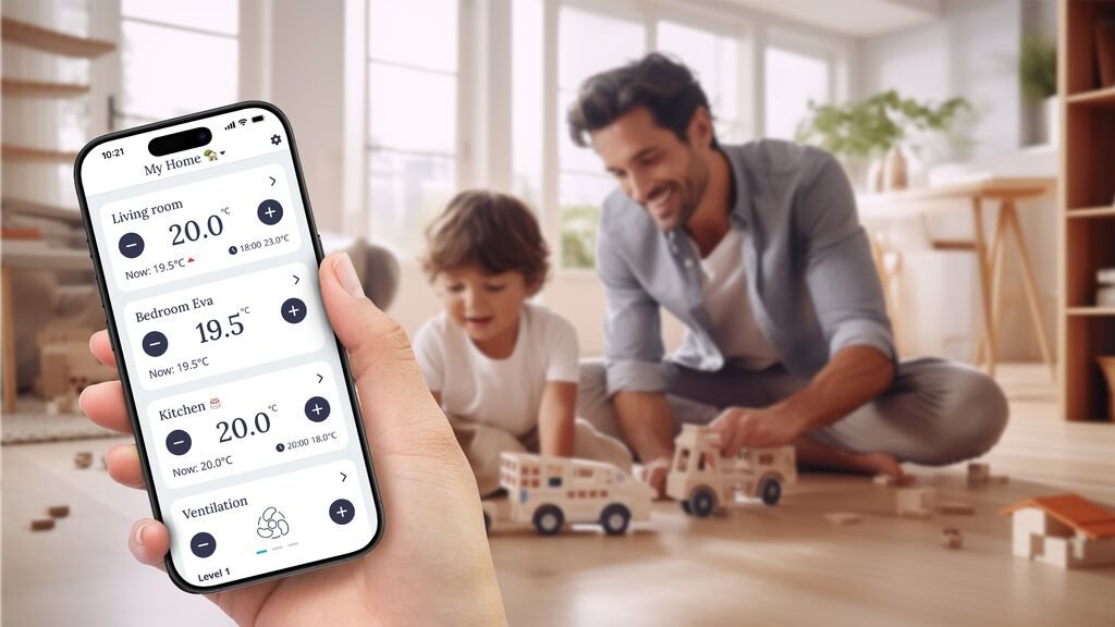 Aplikacja Wavin Sentio umożliwia sterowanie i monitorowanie różnych systemów grzewczo-chłodzących czy wentylacyjnych. Stanowi zatem centralny system sterowania – Wavin All in One. Możliwa jest np. integracja ogrzewania podłogowego z inteligentnymi termostatami grzejnikowymi oraz systemem rekuperacji – użytkownik steruje urządzeniami za pomocą aplikacji Wavin Sentio. Ten zintegrowany system sterowania zapewnia optymalną i komfortową temperaturę w całym domu,