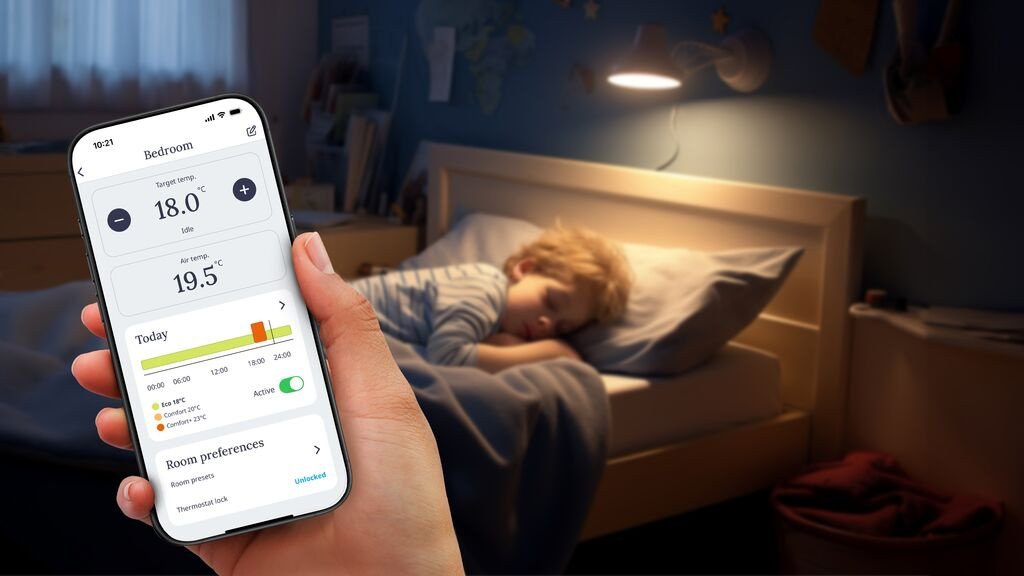 - Maksymalny komfort cieplny, dopasowany do indywidualnych potrzeb – możliwość zaprogramowania różnych temperatur, np. na różne pory dnia, oraz zdalnej zmiany ustawień.