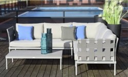 Wśród zestawów wypoczynkowych znalazły się meble modułowe Lea, Sue i Zola. Ich największym atutem jest możliwość tworzenia indywidualnych konfiguracji, dostosowanych do ilości miejsca jakim dysponujemy oraz ulubionej stylistyki. Dodatkowo składające się z elementów meble można łatwo przemieszczać. Dzięki temu zaaranżowanie ogrodowego przyjęcia nie sprawia najmniejszego problemu, a zimą meble łatwo jest składować. Z kolei na niewielkiej przestrzeni sprawdzi się dwuosobowa sofa i fotel z kolekcji Aja. Siedziska i oparcia sof i foteli są miękko tapicerowane tkaninami odpornymi na oddziaływanie warunków atmosferycznych.
