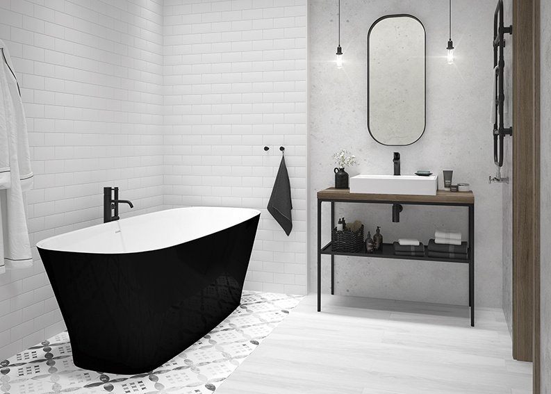 W aranżacji inspirowanej nowojorskim szykiem ogromne znaczenie ma kompozycja. Liczy się symetria, dobrze poprowadzona oś wnętrza i mocny punkt centralny. To właśnie wokół niego buduje się całą przestrzeń — może nim być wolnostojąca wanna o miękkiej, rzeźbiarskiej linii albo elegancka strefa prysznica z wyrazistymi detalami. Styl New York chic nie jest jedynie dekoracyjną oprawą, ale przemyślaną koncepcją, w której estetyka idzie w parze z funkcjonalnością.