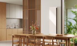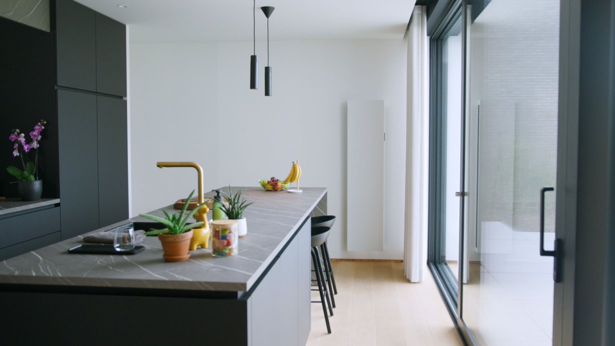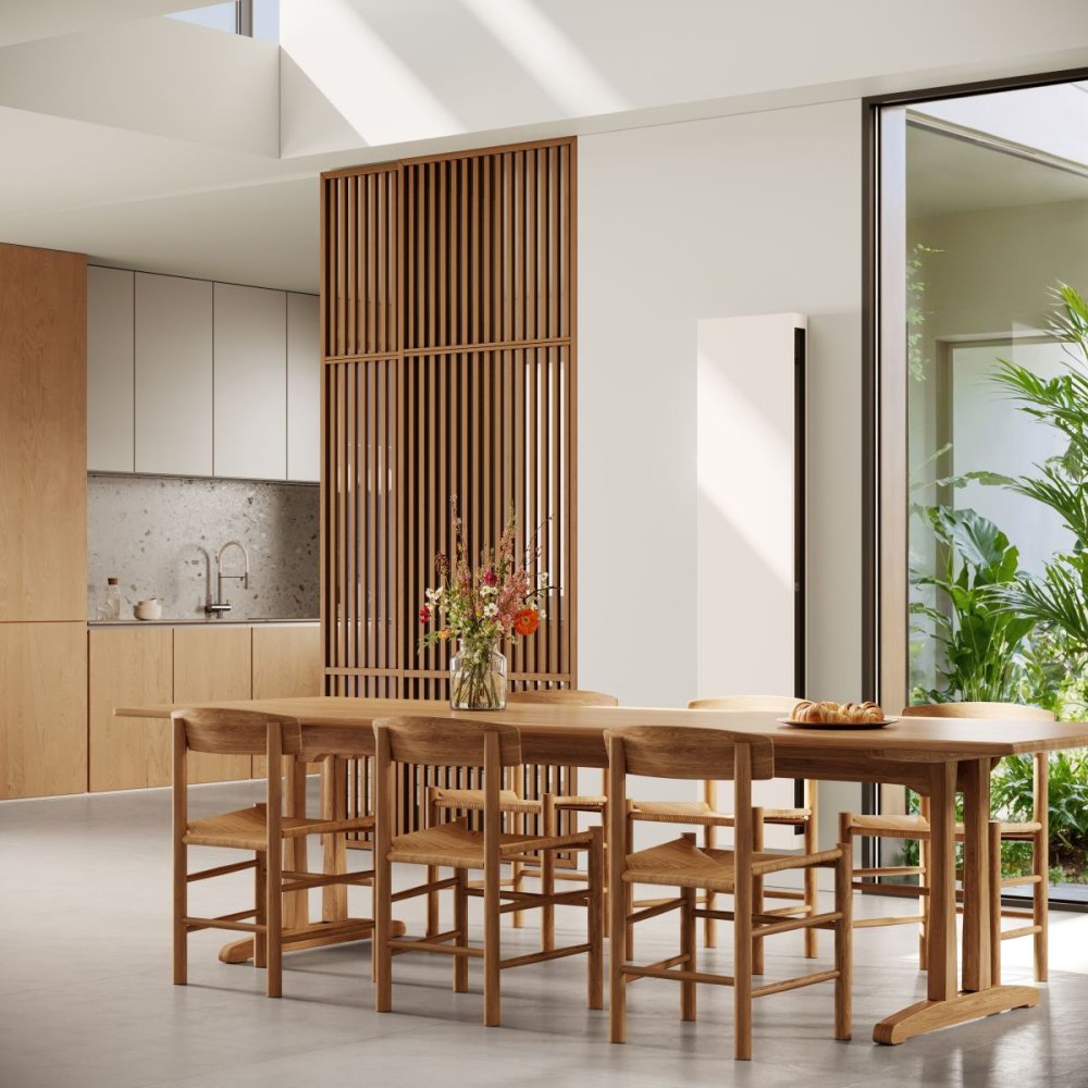 Vertilina Hybrid to nowy, pionowy grzejnik Jaga stworzony do ogrzewania niskotemperaturowego oraz chłodzenia bez kondensacji. Zaprojektowany z myślą o współczesnej architekturze, łączy wysoką wydajność z kompaktową, smukłą formą, która nie dominuje w przestrzeni, lecz ją porządkuje.