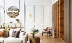 Aranżacja opierająca się na czystych liniach i delikatnym odcieniu Ulotna szarość z palety Dekoral Moc Koloru to przepis na wydobycie z salonu pałacowej przestronności przy zachowaniu ducha nowoczesnego minimalizmu. Połączenie stonowanego koloru ścian ze sztukaterią ułożoną w wąskie pasy od podłogi do sufitu powiększa optycznie przestrzeń, nadając jej lekkości. Prosta forma jasnej sofy oraz dekoracja w postaci dużego białego podobrazia wyznaczają nowoczesny styl i eksponują wrażenie otwartości. Chłodną kolorystykę ocieplają rośliny oraz przytulne tekstylia.