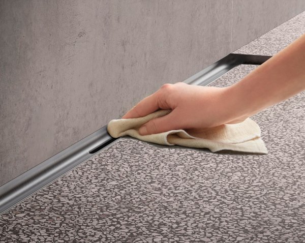 Oprócz względów estetycznych i montażowych, ważną kwestią jest również łatwość utrzymania czystości rynny. Korpus powinien być wykonany ze stali nierdzewnej i zaprojektowany w taki sposób, by zapewnić użytkownikowi jego łatwe czyszczenie. Zwróćmy uwagę na to, czy rynna pozbawiona jest ostrych krawędzi i trudno dostępnych przestrzeni. Dobrze, gdy wyposażona jest w specjalny syfon membranowy, który spowolni parowanie wody i będzie stanowił zaporę dla piany oraz insektów. Odpowiednio zaprojektowane profile prysznicowe charakteryzują się także wewnętrznym nachyleniem optymalizującym odprowadzanie wody. Dzięki temu osiągniemy efekt w postaci samooczyszczania i minimalizacji nakładu czasu pracy niezbędnej dla utrzymania higieny.