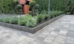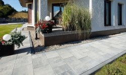 Aranżację otoczenia domu zwykle zaczyna się po jego wybudowaniu. Najpierw wytyczamy ogrodzenie w terenie i ustalamy, gdzie będą bramy lub furtki. To właśnie w ich kierunku należy wytyczyć alejki i podjazd. Następnie wykonujemy fundament ogrodzenia oraz osadzamy pręty zbrojeniowe. Część z nich, czyli pionowe, będą wyznaczać miejsca budowy słupków w ogrodzeniu. Pamiętajmy, że to właśnie do słupków w przyszłości zamontujemy przęsła, furtki oraz bramę. Na tym etapie poprzestajemy na wyznaczeniu ogólnego zarysu - ogrodzenie zostanie dokończone po ułożeniu nawierzchni. Budowę nawierzchni rozpoczyna się od wytyczenia jej w terenie. Pomocne będą w tym paliki i sznurek, którymi „zaznaczymy” poziom obrzeży i bruku. Później następuje etap właściwych robót. Pierwszą czynnością jest korytowanie – zrywamy warstwę wierzchnią gruntu, a następnie robimy wykop na około 25-50 cm. Usuwamy korzenie i kamienie, a na jego dno sypiemy około 10 cm piasku lub pospółki, które ubijamy maszynowo. Następnie niwelujemy podłoże. Spadki poprzeczne powinny wynosić od 1,5 do 3 proc., a podłużne - 0,5 proc. Ma to zapewnić właściwą pracę nawierzchni w przyszłości, co wpływa na jej trwałość. Kolejny krok to wykonanie podbudowy. Wykonuje się ją z kruszyw naturalnych i łamanych. Jej grubość wynosi zwykle 10-15 cm. Następnie podłoże zagęszczamy zagęszczarką wibracyjną. Na tym etapie warto zająć się również obrzeżami. Są one bardzo ważne, gdyż będą stabilizować nawierzchnię, zapobiegając rozpychaniu jej na boki. Krawężniki osadzamy w fundamencie wykonanym z półsuchego betonu C16/20 ułożonego na warstwie podbudowy. Pomiędzy poszczególnymi elementami należy zachować odległość od 3 do 5 mm. Gdy już osadzimy obrzeża, czas wrócić do nawierzchni. Wykonujemy 4-5 cm podsypkę, zazwyczaj z piasku, którego nie ubijamy, a jedynie wyrównujemy. Aby uzyskać warstwę o większej stabilności, można wymieszać ją z cementem, który zwiąże ziarna piasku pod wpływem wilgoci. Alternatywą jest drobny grys. Teraz przystępujemy do układania wybranych płyt lub kostek, zaczynając od krawędzi i kontynuując w kierunku środka. Chodzi o to, żeby nie naruszyć wcześniej wyrównanej podsypki. Elementy delikatnie dobijamy młotkiem, aby osadzić je w podsypce. Minimalna odległość, którą musimy zachować pomiędzy płytami lub kostkami, wynosi 3 mm. Taki bufor jest ważny, aby w przyszłości, gdy nawierzchnia będzie pracować, elementy nie nachodziły na siebie. Na tym etapie warto pamiętać również o tzw. zasadzie trzech palet. Polega ona na tym, że przy układaniu nawierzchni, , dobrą praktyką jest mieszanie elementów z co najmniej trzech palet jednocześnie. Związane jest to z tym, iż betonowe kostki brukowe mogą wykazywać niejednolitość w zabarwieniu spowodowaną nieuniknionymi zmianami właściwości surowców. Po ułożeniu kostek czy płyt przychodzi czas na spoinowanie i zagęszczanie. Spoinowanie polega na wmiataniu piasku w szczeliny pomiędzy elementami, a do zagęszczania niezbędna jest zagęszczarka z płytą wibracyjną, która umożliwi ubicie położonej nawierzchni. Alternatywą dla piasku płukanego jest jego polimerowy odpowiednik, taki jak np. DR + NextGel. Po zakończeniu prac przy budowie nawierzchni, możemy dokończyć budowę ogrodzenia.