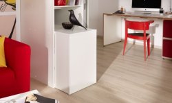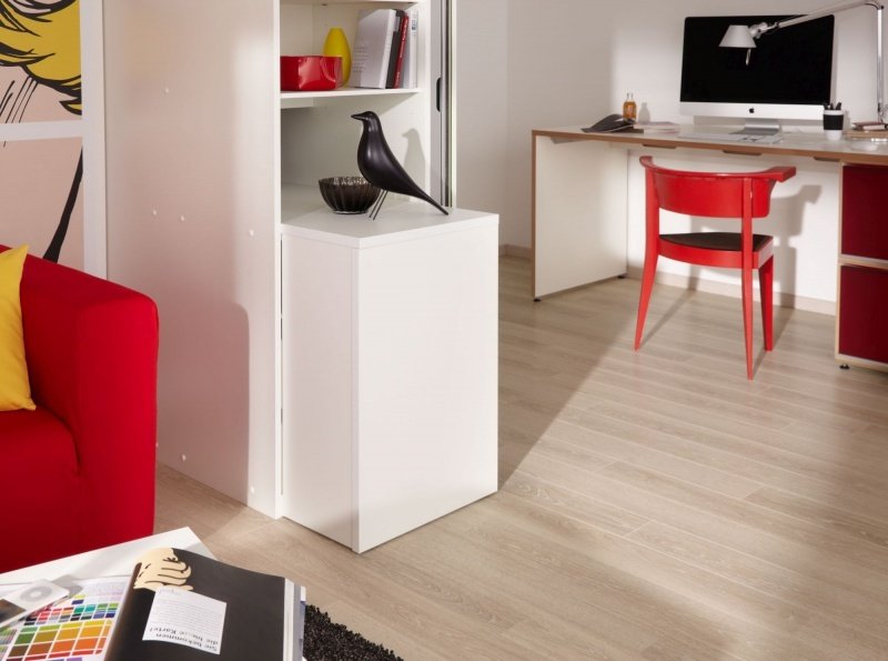 Jeszcze więcej funkcji oferuje system Mobile. To innowacyjne rozwiązanie jest połączeniem technologii drzwi przesuwnych oraz systemu do przechowywania. Mobile w pełni ujawnia swoje zalety, gdy konieczna staje się przeprowadzka lub nowa aranżacja wnętrza domu. Konstrukcja systemu daje możliwość samodzielnego demontażu i przeniesienia go do nowego miejsca. Ten przyjazny użytkownikowi mebel łączy funkcję garderoby z miejscem do pracy lub nauki, które tworzy wysuwany stolik oraz praktyczne półki i szuflady.