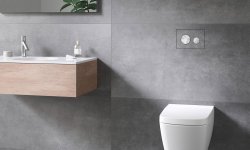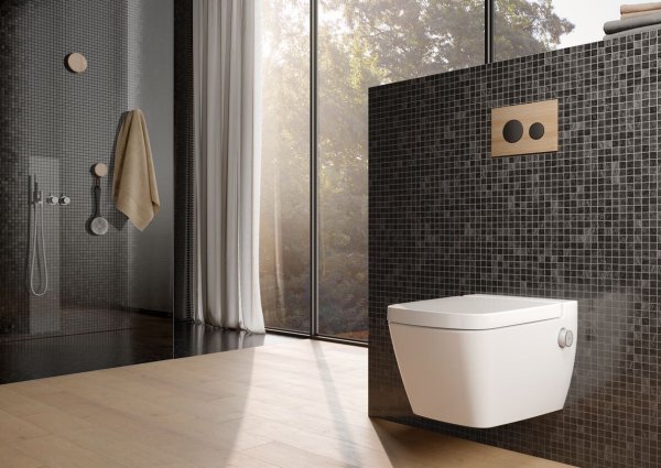 Rosnącym zainteresowaniem projektantów wnętrz cieszą się w ostatnim czasie przyciski spłukujące do zabudowy. Przykładem są nowe warianty modeli TECEloop i TECEsquare, które oferują więcej możliwości w kreowaniu unikalnych pomieszczeń sanitarnych. Dzięki wypełnieniu odpowiednim materiałem wykończeniowym, takim jak płytka, kamień, konglomerat, płyta tworzywowa czy drewnopochodna, możemy wizualnie zintegrować przycisk z wykończeniem ściany. Uzyskany w ten sposób efekt to widoczny jedynie zarys płytki i klawisze, co przekłada się na funkcjonalną prostotę i harmonijny minimalizm.