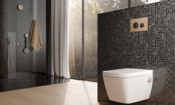 Jednym z nich jest bezdotykowy przycisk TECElux mini czy wielofunkcyjny terminal WC TECElux. TECElux to rozwiązanie nowej generacji, integrujące sprawdzoną technologię z designem użytkowym. Terminal składa się z trzech części: modułu WC oraz dolnej i górnej szklanej obudowy – wyposażonej w mechanizm uruchamiający. Dzięki funkcji „smart-Connect” terminal można łączyć z dowolną ceramiką o rozstawie 180 mm, a także z toaletą z funkcją bidetu. Istnieje również opcja programowania elektroniki terminala, np. obszaru detekcji czujnika, stopnia jasności wyświetlacza, intensywności oczyszczania powietrza i szeregu innych funkcji. TECElux gwarantuje higieniczny i wygodny sposób uruchamiania wody. Po zbliżeniu się do obszaru detekcji przycisku – jego zarys podświetla się. Spłukiwanie w strefie bezpośredniej (tj. około 10 mm) uruchamiane jest bezdotykowo lub za pomocą lekkiego dotyku. Z kolei dzięki zastosowaniu nowoczesnego systemu oczyszczania powietrza „ceramic-Air” w terminalu TECElux zapachy neutralizowane są u źródła, a przefiltrowane powietrze doprowadzane jest z powrotem do łazienki. To innowacyjne rozwiązanie wykorzystuje ceramiczny filtr z wkładem z węgla aktywnego. Nowoczesna łazienka uwzględnia potrzeby wszystkich użytkowników – dzieci, dorosłych, osób starszych. Dlatego terminal WC TECElux wyposażony został w funkcję „m-Lift”. Dzięki niej możliwa jest zmiana wysokości montażu ceramiki w zakresie 8 cm - nawet po instalacji modułu.