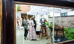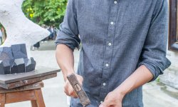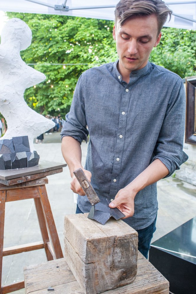 Dzięki wsparciu Galerii ToTuArt, w trakcie spotkania na oczach gości powstała instalacja artystyczna rzeźbiarza Jana Musiałowskiego. Rzeźba ta jest wyjątkowa nie tylko ze względu na okoliczności i talent młodego artysty. Jest ona także w pełni zgodna z ideą nowej kolekcji Sunlit Days, która w swym składzie zawiera co najmniej 20% surowców pochodzących z recyklingu. Jan Musiałowski stworzył swe dzieło wykorzystując próbki tych kolorów Silestone, które zostały wycofane z produkcji, nadając im tym samym zupełnie nowe życie. „Rzeźba tworzona podczas premiery nowej kolekcji Cosentino miała przedstawiać rodzaj aury emocjonalnej. Przygotowana wcześniej gipsowa forma stała się szkicem do pokrycia struktury mozaiką z Silestone. Materiał ten zainspirował mnie swym niezwykłym kolorem i fakturą” – mówił o swoim dziele rzeźbiarz Jan Musiałowski. Dzięki współpracy Cosentino z Galerią ToTuart praca artysty zostanie wystawiona na aukcję, a cały dochód z jej sprzedaży zasili konto Wielkiej Orkiestry Świątecznej Pomocy. Z ramienia Galerii ToTuart o instalacji i jej dalszych losach opowiedzieli właściciel galerii Marek Duchnowski i jej dyrektorka Agnieszka Budzyńska.