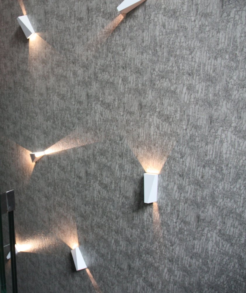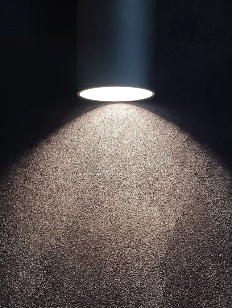 Tę niezwykłą właściwość światła szczególnie warto stosować przy tak wyjątkowych okładzinach, jak na przykład zamszowa tapeta Murasuede Muraspec. Jej fizyczna i wizualna miękkość pięknie ożywa w odpowiednim oświetleniu dzięki drobnym „włoskom” struktury.