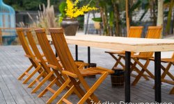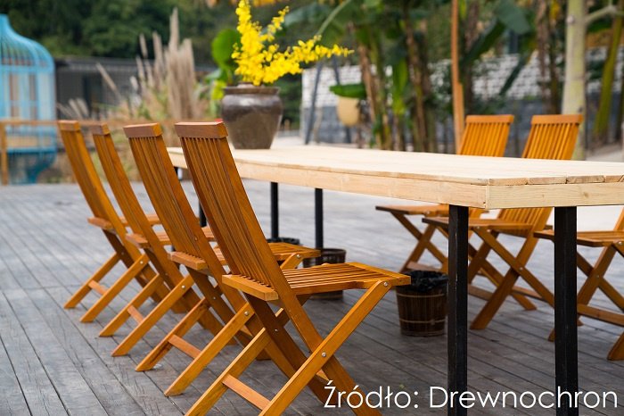 W przypadku drewnianych tarasów, które całorocznie narażone są na bezpośrednie działanie czynników atmosferycznych, konieczne może być cykliczne powtarzanie konserwacji raz do roku np. z użyciem specjalistycznego oleju do drewna. Najlepiej sprawdzają się tu produkty oparte na wysokiej jakości naturalnych składnikach — jak olej do drewna Drewnochron, zawierający dużą ilość oleju tungowego. Skutecznie chroni on tarasy przed różnorodnymi warunkami pogodowymi, tworzy trwałą barierę przed wilgocią, a jednocześnie wzmacnia drewno od środka, zapobiegając jego wysychaniu i pękaniu.